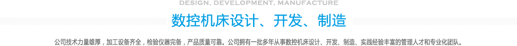 公司技術力量雄厚,加工設備齊全,檢驗儀器完備,產品質量可靠。公司擁有一批多年從事數(shù)控機床設計、開發(fā)、制造、實踐經(jīng)驗豐富的管理人才和專業(yè)化團隊。